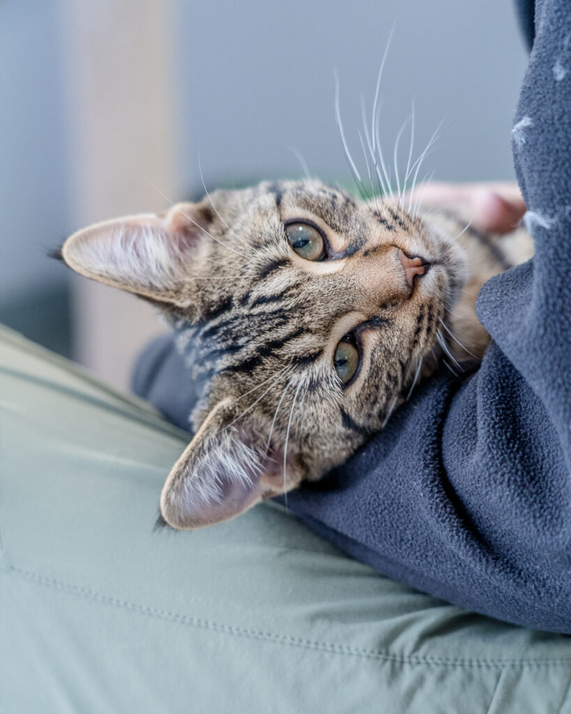 Then, on 9 May 2025, after spending more than six months in our care, including six weeks in the adoption rooms waiting to meet his person, Bambam met his perfect human and headed off to his forever home, where he now enjoys exactly what he had always wanted: a lap to call his own.